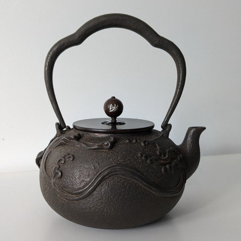 Bouilloire fonte brute Tetsubin motif vague 1,2L : eau enrichie en fer biodisponible
