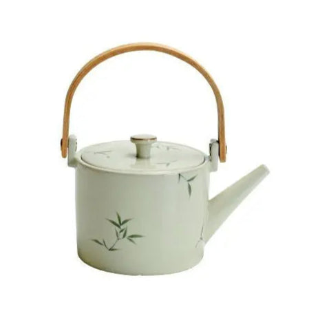 Théière Porcelaine Scandinave 420ml avec Anse Bois et Motif Bambou Peint Main
